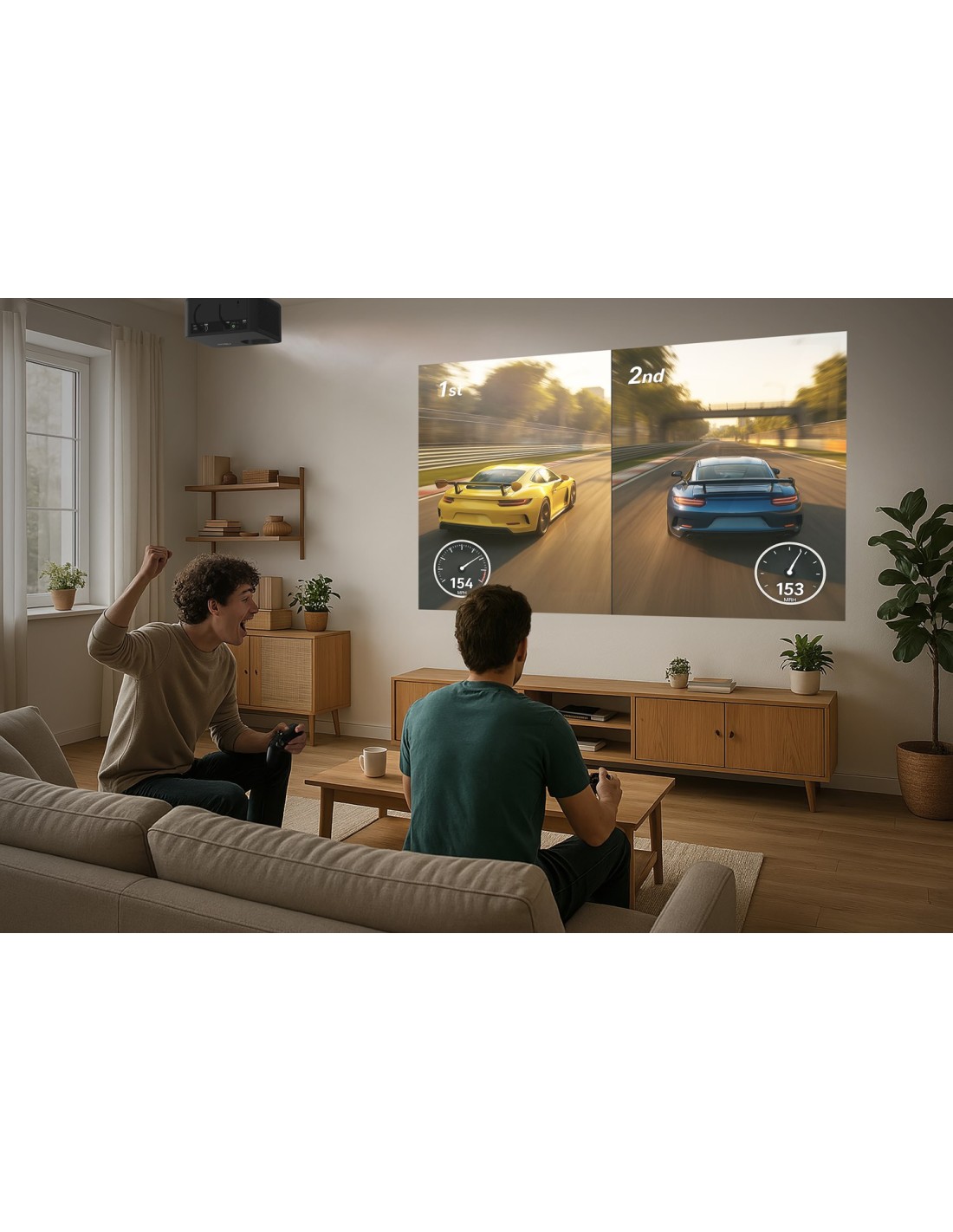 Convierte cualquier habitación en una experiencia de gran pantalla, perfecta para películas, juegos y streaming, capaz de generar una imagen de hasta 150".
